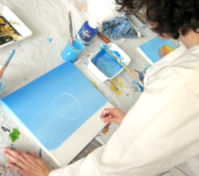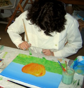 formule nouvelle spécialement adaptée pour : A la différence des ateliers habituels, ou chacun mène son projet personnel et à son rythme, lors de la séance spéciale du samedi après-midi qui est plus longue, on fait tous exactement le même thème, simultanément avec celui de Pierre Marcel. Pierre Marcel fait sa peinture devant nous, et avec nous. On le suit. On court, on ne perd pas de temps, c'est la course et à 18h on est sur les genoux, mais on a chacun sa peinture, trophée bien mérité prêt à être ramenée à la maison ! Chaque étape est expliquée, et l'on passe à la suivante que lorsque tout le monde en maîtrise les essentiels. Tambour battant, on mène son tableau jusqu'au bout, en un déroulement de séquences jamais prévisibles. On n'est pas prévenu du thème final du tableau, c'est toujours une surprise, étapes par étapes. Bien qu'une part d'improvisation et de créativité nous est demandé, on travaille dans un cadre précis, car si le but est de réaliser à chaque fois un tableau "surprise" complet, l'essentiel est d'acquérir des gestes et des techniques précises. Les séances suivantes, on consolide les acquis, et l'on se dirige sur une nouvelle idée, un parcours jalloné de nouvelles découverte et de nouvelles techniques.