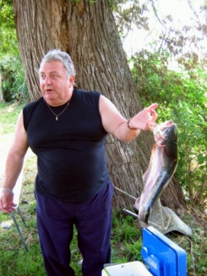 Sylvie sera la plus hardie à aborder les pécheurs avec décontraction et jovialerie, lors de nos séances de peinture et nos barbecues, en juin 2006. Nous y avions été très bien accueillis, et nous y reviendrons avec plaisir ! |